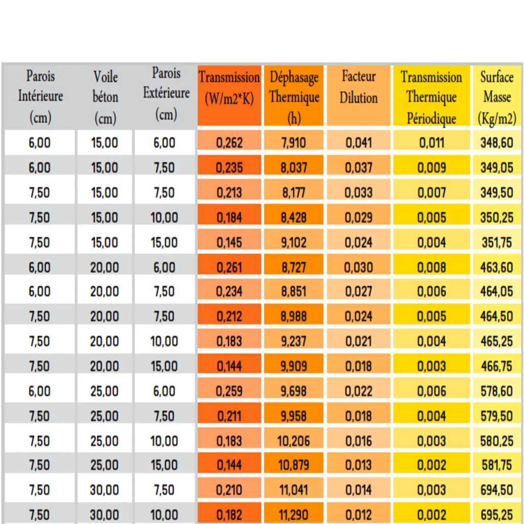 D’excellentes valeurs de transmission thermique périodique, de décalage et d’amortissement de l’onde thermique garantissent un excellent confort estival.